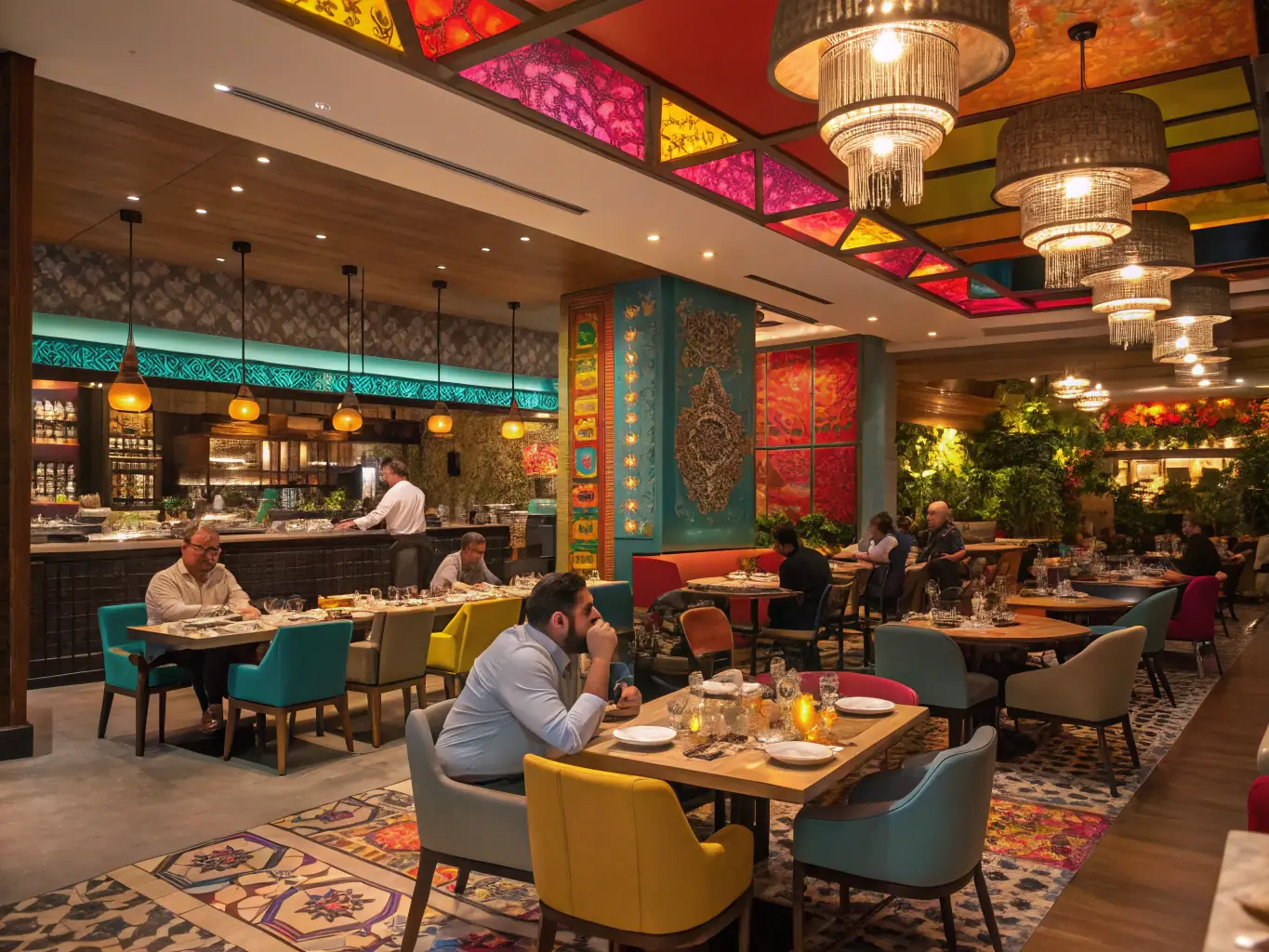 Projekt wnętrza restauracji z industrialnym charakterem, wykorzystujący surowe materiały i minimalistyczne rozwiązania, tworzący unikalną atmosferę.